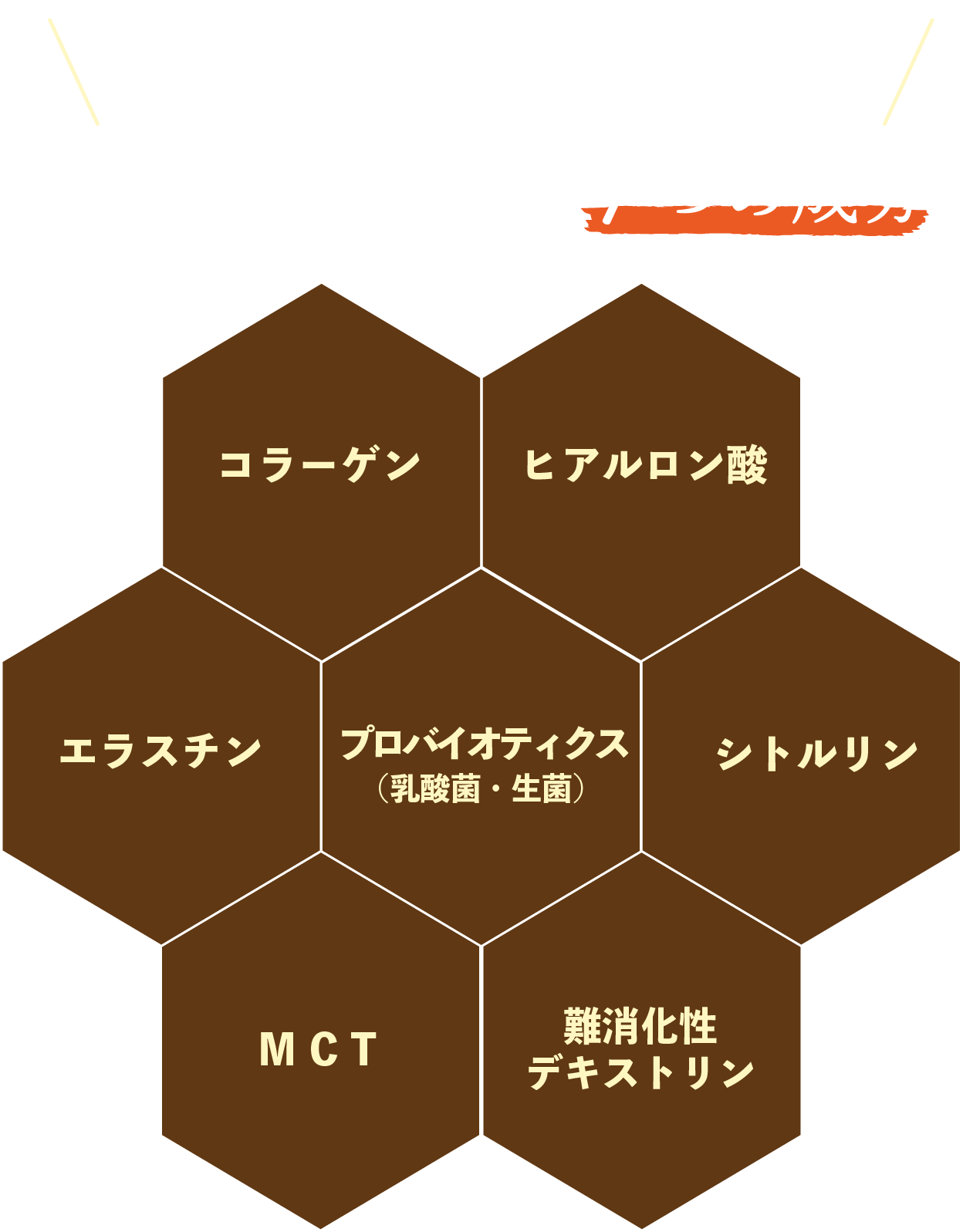 パラチノース®は、はちみつにも含まれる天然の糖質です コラーゲンは、すでに多くの女性の方に知られている代表的な美容成分の一つです。1袋あたり3,300mgのコラーゲンペプチドを配合しており、肌の潤いを保ち、ハリのあるお肌作りをサポートします。 クッションの役割を果たすヒアルロン酸は、肌の弾力やハリを保ちます。女性の美容と健康の両方をサポートします。 不足しがちな食物繊維を補う成分として最近注目されている水溶性食物繊維です。脂質や糖質が気になる方へもお勧めです。 脂肪になりにくくエネルギーになりやすいMCT(中鎖脂肪酸100%)を採用しています。ボディメイク業界でも注目の成分です。1食中1500mgのMCTパウダーを贅沢に配合。 『冷え・むくみ』に悩む女性にぜひ取り入れて欲しい成分です。体の巡りを良くするスーパーアミノ酸です。 コラーゲンとの相性が抜群の話題の美容成分です。みずみずしくハリのあるお肌作りをサポートします。
