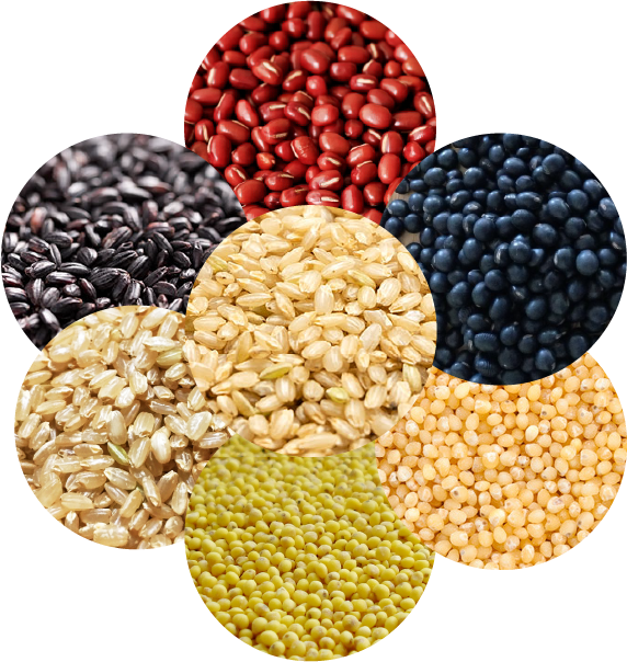 発芽玄米を中心に、黒米や黒千石大豆などの