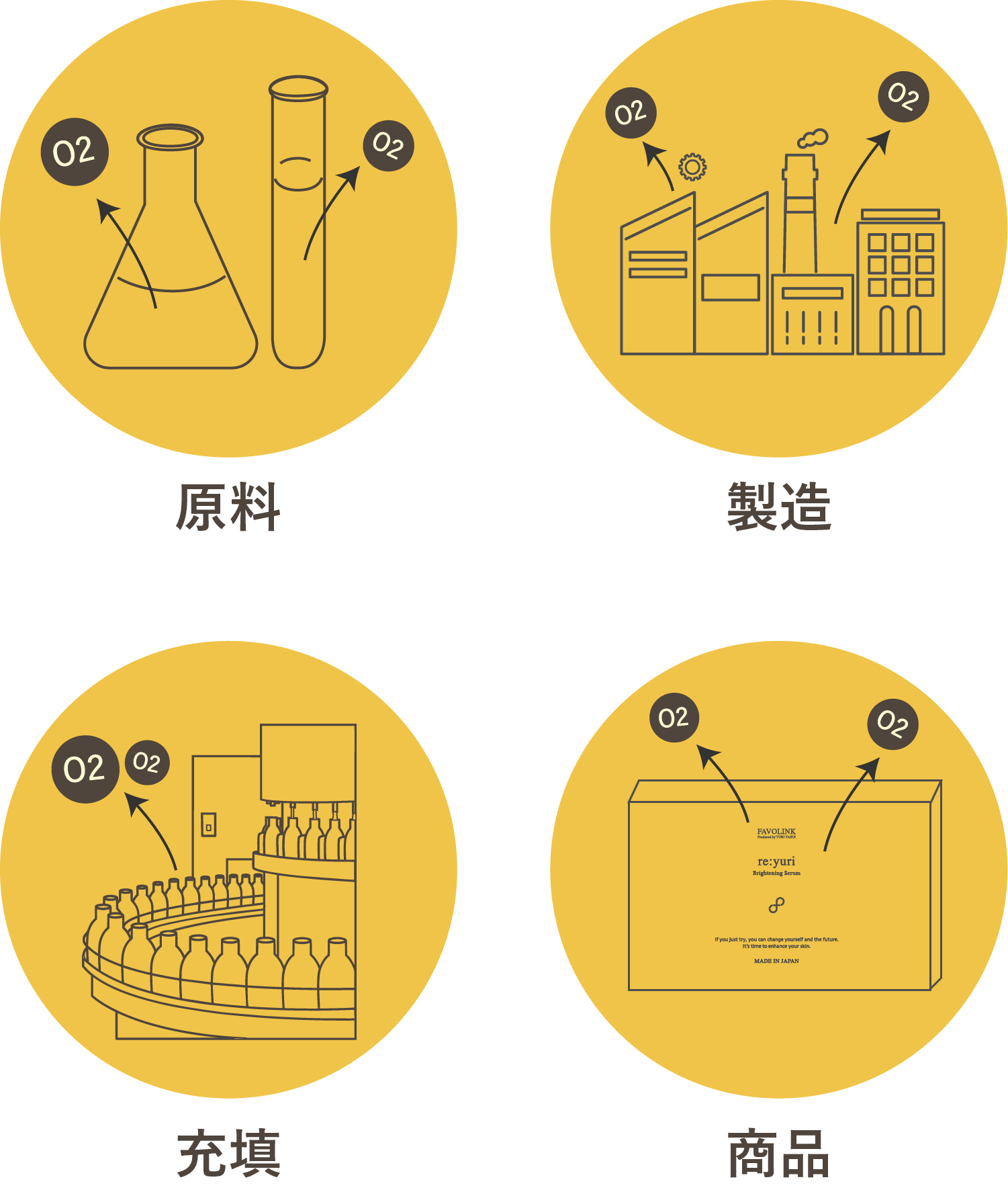 FAVOLINKの「re:yuri Brightening Serum」は、脱酸素製法®を採用。生のビタミンC※2の酸化を防ぎ、肌に届くその瞬間まで肌に優しい弱酸性の状態で鮮度を保つことが可能です。