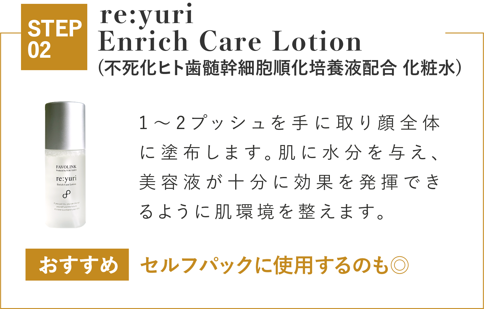 眠った肌にスイッチを入れ、肌リズムを整え、乾燥や年齢とともに変化する肌にハリをもたらします。